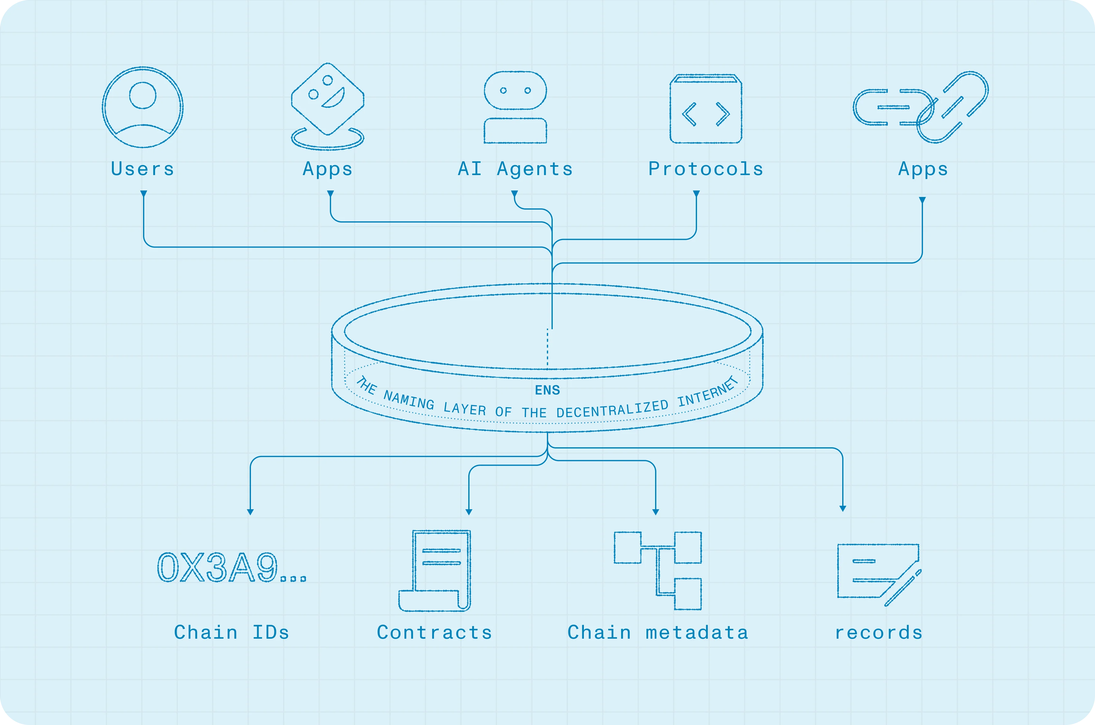 ENS provides an identity standard that any application can build on. Instead of each platform maintaining its own identity directory, the ecosystem can coordinate around a shared set of names that resolve consistently across any interfaces and networks.
